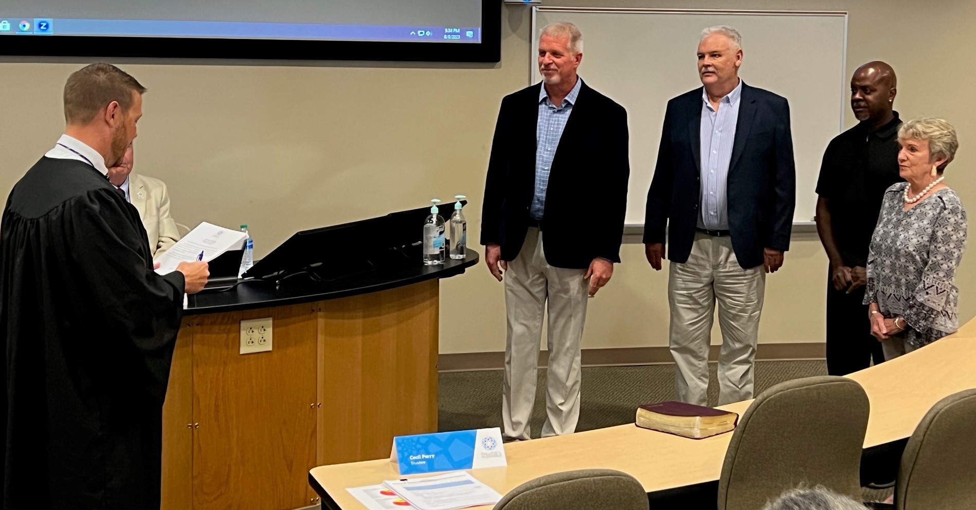 Elizabeth City – College of The Albemarle (COA) Board of Trustees met for their Regular Meeting on August 8, 2023, at 5:30 p.m. at COA – Elizabeth City. The Board of Trustees welcomed new members, Barry Overman and Edward Thornton. They also welcomed the reappointment of Patti Kersey and Travis Gilliard. Additionally, the Board reappointed officers as required in the COA Board of Trustees Bylaws. David Harris, chair for 2022-2023, was reappointed to serve as chair for 2023-2024. Tommy Fulcher who served as vice chair for 2022-2023 was also reappointed to that role.