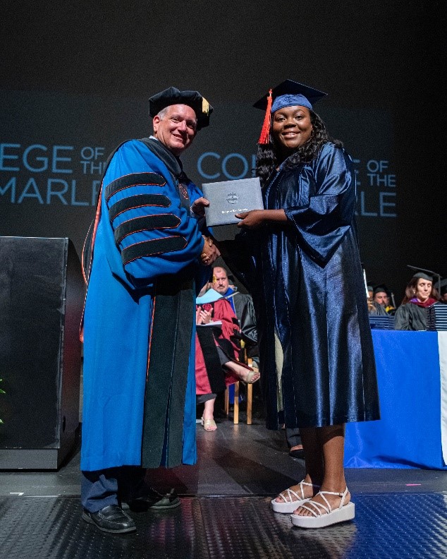President Bagwell presents Esquana Brown with her diploma for Associate Degree Nursing at COA – Elizabeth City’s 3:00 pm ceremony.