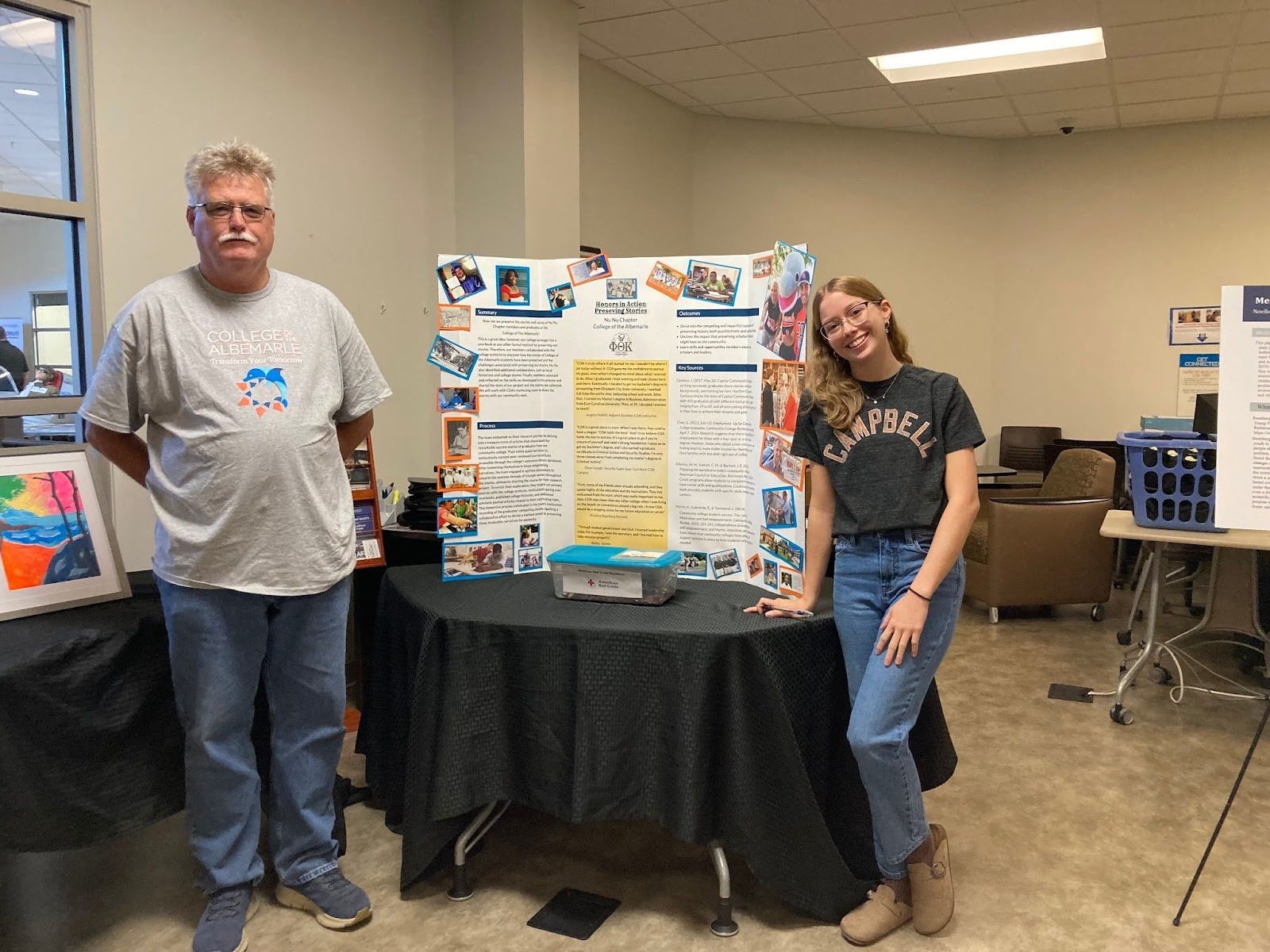 Andrew Heath, PTK President, and Aimee Marsh, PTK Public Relations and Recording Officer, pictured with the chapter’s 2024 project at COA – Currituck’s Advanced Manufacturing Day Event in October.